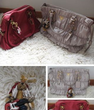 prada的尼龙包一直都想要,包身轻,适合我这种包里总是放很多东西的人,趁着去欧洲的机会就把他收了,还有可爱的吉他小熊,比国内价格可爱多了,小熊个个都想要,但这个最耐脏,再一次证明了偶是实用派 。chloe的包包似乎很多MM不喜欢,偶喜欢他,没有Logo,颜色也很美,包身侧面有小旋钮可以调整包的厚度,正好自己也没亮色的包包,也收了吧。 嘿嘿,这款paraty还有蟒蛇皮材质的,应该由很多MM喜欢,但偶不太敢要。