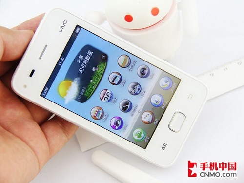步步高vivo V1正面采用了一块和iPhone 4S同样大小的3.5英寸电容触控屏,大小适中,屏幕分辨率达到了320×480像素级别,显示效果比较清晰。该机正面内置了一枚500万像素的摄像头,并配有LED闪光灯,支持自动对焦和多种LOMO特效,拍照功能非常全面。硬件方面,步步高vivo V1搭载了一颗800MHz主频的高通MSM7227处理器,能够保证整机的流畅运行。该机系统采用了目前主流的Android 2.3操作系统,该系统下,有着丰富的应用软件可供用户使用。