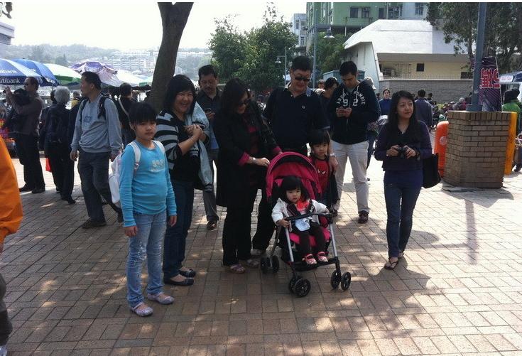 发呆时,偶遇一家人,娃娃车里的宝贝,是不是很可爱,让人看了就喜欢呢?