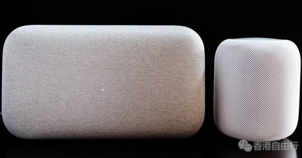 外观上看,HomePod采用了织物包裹,有灰白两种颜色,重2.5约公斤,它的高度为170毫米,宽度约为140毫米),与5.3公斤的Google Home Max相比,身材显得更娇小。但是当拿起它时,HomePod会让人感觉到惊人的密度,分量十足。