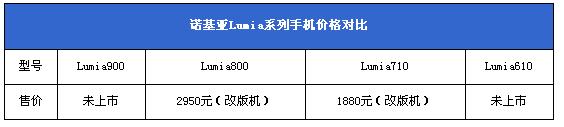 目前,诺基亚Lumia800、710已经登陆改版机市场,售价在3000元和2000元左右,相对于Android单核智能手机来说价格偏高,其他两款机型还没有在中国市场(包括改版机市场)上开卖。据悉,诺基亚Lumia800和Lumia610有望在三月底正式登陆中国大陆上市,行货预计售价分别为3800元和1899元。如果这个定价属实的话,对于配置并不算高的两款单核智能手机来说,Lumia800和Lumia610的市场竞争力一般。