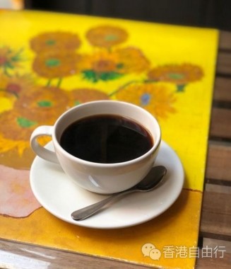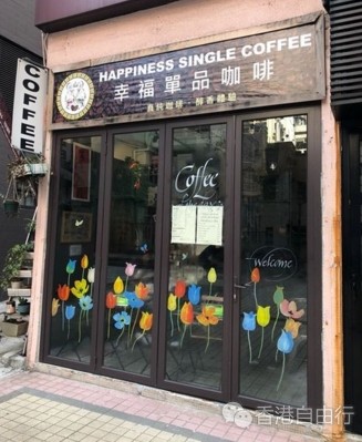 高街英华台尽头有间小小的咖啡店,名为幸福。落地玻璃门画有手绘郁金香,店内播住古典音乐,舖头细细,却充满艺术气息。