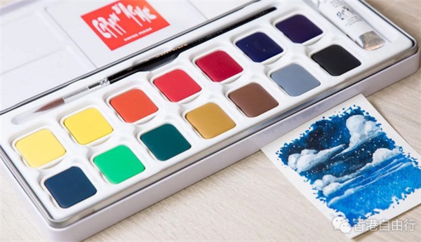 不透明水彩 $378/15色。水彩涂在画纸上会是半透明效果,此不透明水彩出来的效果会较实色