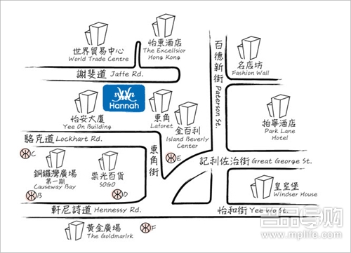 地址: 香港铜锣湾东角道24-26号怡东商场9-12号地下及9-11号1楼(wtc more 世贸中心对面)