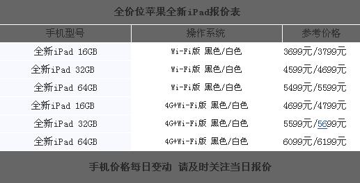 全价位苹果全新iPad报价表
