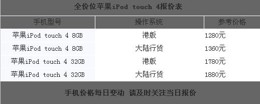 全价位苹果iPod touch 4报价表