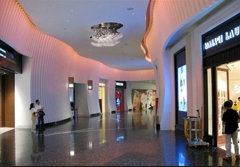 新濠天地是集酒店、购物、娱乐博彩等多种元素为一体的项目。其中的新濠大道是购物中心,分两个楼层,一楼为时装和饰物,二楼为名表和珠宝。