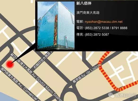 澳门新八佰伴百货位于澳门半岛南湾商业大马路(英皇娱乐酒店旁)。