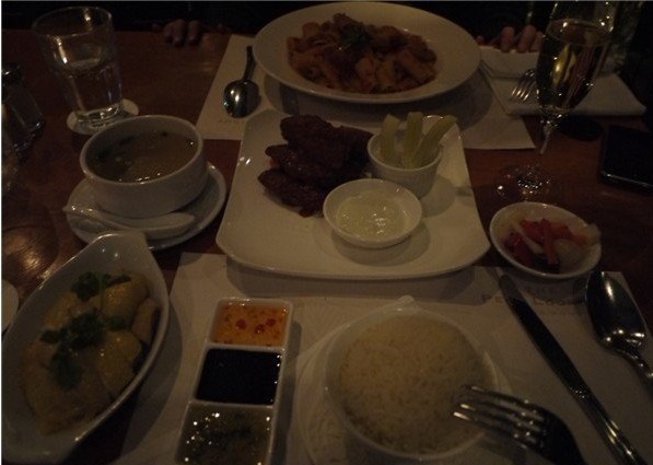 买完手表已将近8点,我们临时改变了行程,将本来打算第二天晚上去太平山顶(此行唯一的景点)的计划提前到了当下,于是为赶时间打的到了中环(以为没多少钱,最后却是打掉快200,心疼),打的到坐缆车的地方下来,由于在淘宝上已事先买好缆车票,就直接上车不用再买票了。到达山顶,找到太平山餐厅,决定进去刷一顿小浪漫一下,也许是周五晚上的缘故,好多香港人在里面聚餐,气氛吵闹得很,我和老公一人点了一份餐,加两杯香槟,吃掉1000港纸,哎,巨贵无比啊,菜品味道一般,主要是吃个气氛。