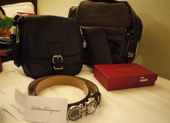 放好东西去楼下吃了点快餐,前往ISA。老公在里面挑了Ferragamo的皮夹和皮带,这里重点要说一下这个皮夹,这款印花经典款我们前一天在DFS和海港城的专卖店都问过,全都不打折,原价是2900港币,没想到ISA居然打7折,因为之前在坛里抄了张会员卡,又打掉5个百分点(抄了两张,第一张无效,第二张有效,所以建议JMS多搜集一些卡号,以防有些不能用哈~)。