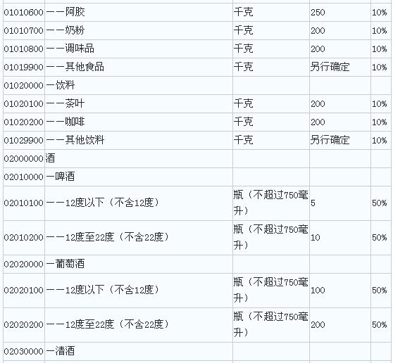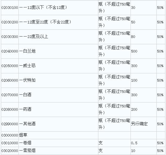 对02000000税号项下的各类酒,单瓶容量超出750毫升的,每满750毫升按照1瓶计征税赋,超出部分不足750毫升的不予计算。