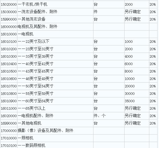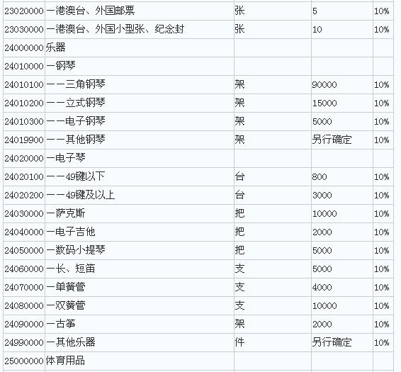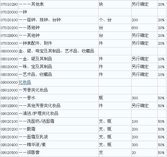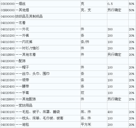 2.中华人民共和国进境物品完税价格表