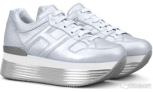 时髦的银色尤物展现奢潮时尚态度,全新HOGAN 2018春夏系列Maxi H222运动鞋,银色金属质感鞋底搭配同色系鞋身,前卫的设计,秀出闪亮自我