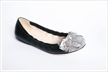 黑色缀蛇皮蝴蝶结饰圆头鞋 $4,000