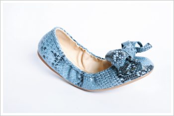 蓝色蛇皮缀蝴蝶结饰圆头鞋 $4,050
