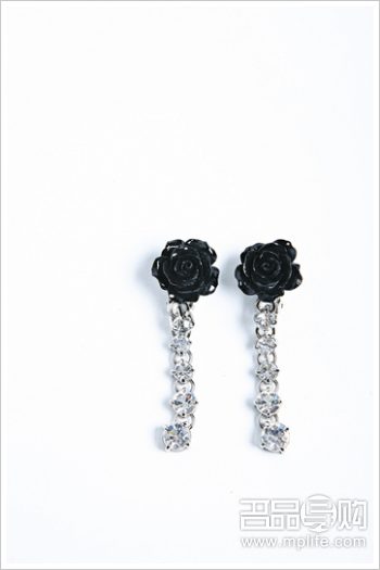 黑色玫瑰花缀宝石饰耳环 $3,950