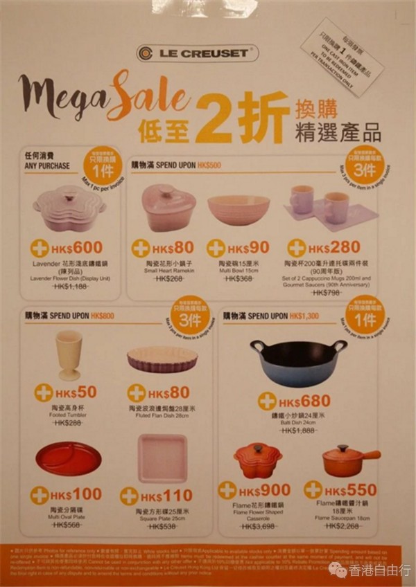 Le Creuset低至3折开仓!这个法国厨具品牌深受女士欢迎,今次开仓有五百多款铸铁锅、花花碟、储物器等厨具大减价,更有不少粉色系列,最平$80有交易,限定5日!