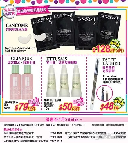 防晒、香水、面膜、彩妆等!雅施门店最新优惠海报(4月26日止)