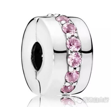 经典PANDORA固定夹以全新设计示人,此多角形925 银作品缀以一排粉红色立方氧化锆石,完美绽放手链光芒。