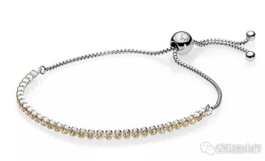 此925 银作品镶嵌华丽的金色宝石,为经典手链设计注入现代气息。运用滑扣可调整尺寸和造型。