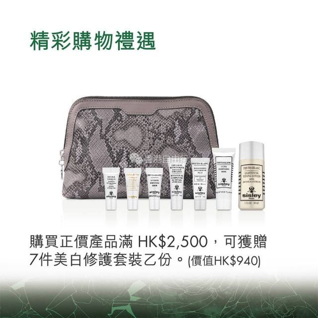购买正价产品满 HK$2,500,可获赠7件美白修护套装1份 (价值HK$940)。
