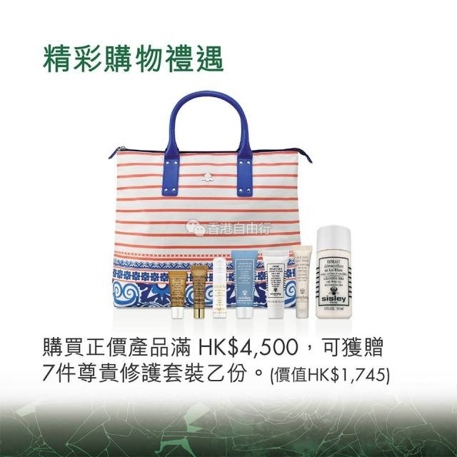购买正价产品满 HK$4,500,可获赠7件尊贵修护套装1份 (价值HK$1,745)。