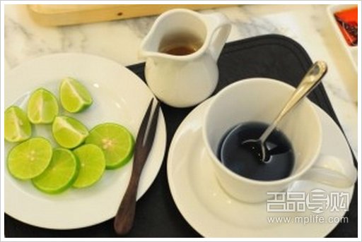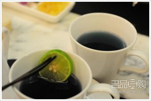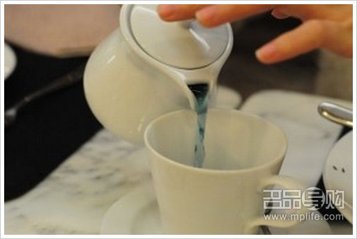 当我还在看着友人那杯蓝色的热饮...什么? 是我眼花吗?明明是清澈的蓝色一下子变了紫色?! 友人笑着说“MAGIC”!!!哎哟什么magic? 哈哈,原来他加了一小块青柠,我虽不是什么科学家但猜想一定是青柠中的酸和茶发生了化学作用吧!太美妙了!紫色可是我喜爱的颜色之一!怎么我在曼谷总店看不到有这杯热饮?找个经理来问问吧,当测试一下他对自己工作的厅餐认识又有多深也好!经理先生果然十分专业并且态度十分好,他说曼谷当地天气热,所以没有这款热饮,但当知道大部份香港女仕都爱较健康的热饮,所以在泰国引入这种特别的花茶到港!实是太体贴了!