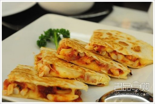 接着是海鲜芝士馅饼,刚焗好的夹饼满是海鲜和惹味芝士,半熔的芝士紧紧围着新鲜虾仁和鱿鱼粒,这一边正纠缠着那一边已被热烘烘的酥脆夹饼紧紧夹在一起!还说什么,快快放进嘴里去吧!