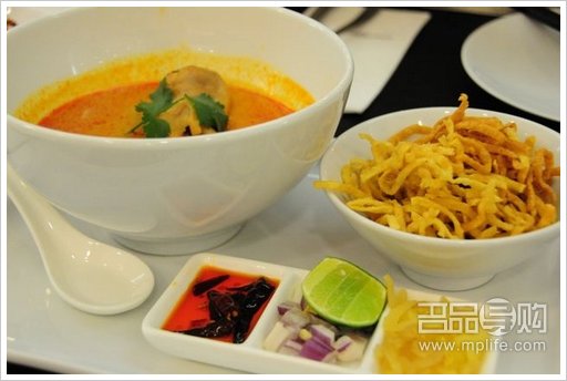 来了三个Appetizers,是时候看看Main Course是什么!不如先来呷一口热汤吧!这清迈鸡腿咖喱蛋面,浓浓的咖喱汤美味非常,内里鸡肉是用上鸡腿肉所以十分嫩滑,除了蛋面还有蛋面!大家不要误会,我可没有叫‘加底’,我指的是除了咖喱汤内的蛋面,还有一碗炸过的蛋面,炸过的蛋面十分香脆可口,这个‘软硬兼施’的汤面你又怎能错过呢?