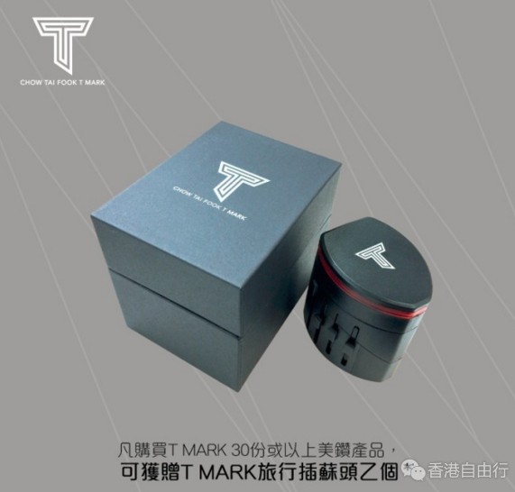 即日起至5月31日,只要亲临新店购买任何镶嵌类产品,即可获赠精美T MARK笔一支*✏;购买T MARK 30份或以上的美钻产品,更可获赠T MARK旅行插头一个*!