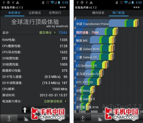 通过象限与超级兔子软件,我们也是看到,华为Ascend P1的成绩也是达到了目前双核手机的最顶级水平,两种测试的成绩都是目前笔者评测过的手机中最高的了。
