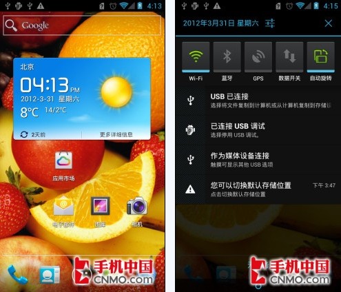 华为Ascend P1搭载的Android 4.0系统与之前的Android 2.3版本系统有着很多不同,比如,在Android 4.0系统上,我们不再能够直接的长按桌面添加小部件了,只能够通过分栏程序菜单拖拽至卓面,个人感觉这种设计在用户体验上有所下降。