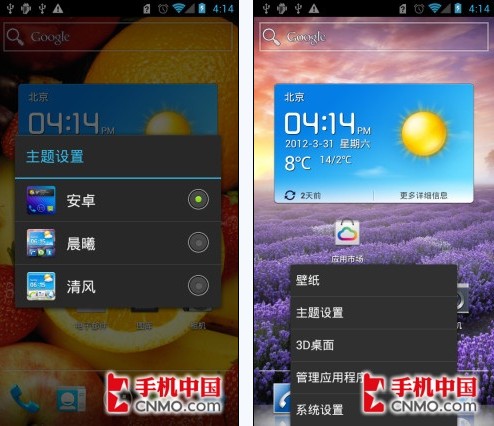 华为Ascend P1拥有三套不同风格的基于Android 4.0系统的主题,我们在设置界面上就能轻易找到。