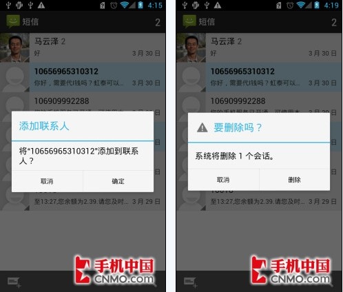 熟悉Android系统的朋友肯定已经习惯了,左侧确定,右侧取消的按键方式,而在4.0版本中,这种方式被左右置换,需要我们适应一段时间。