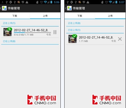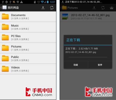 简单的几步上传,图片就来到了“我的网盘”中,用户要找回文件直接点击就可将文件回传到手机上了,十分方便。
