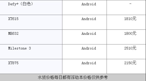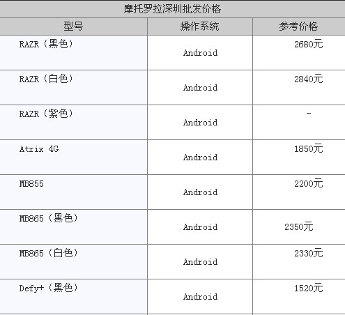 摩托罗拉主流机型价格