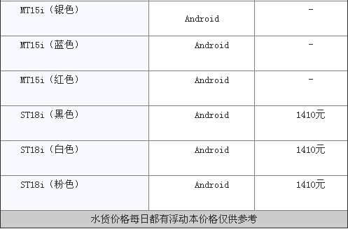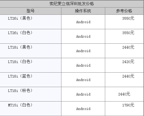 索尼爱立信主流机型价格
