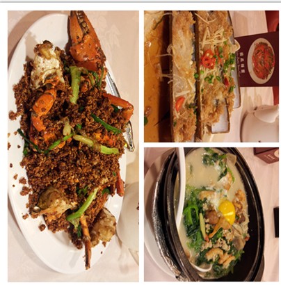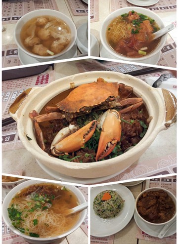 在池记吃了两顿晚饭(第二顿是为了花掉第一次返的6元券)循着大众点评点了好评度超高的云吞、牛筋面和猪软骨,样样都不让人失望看着菜单上的蟹煲糯米饭吃货们心中都长了草于是从山顶返回的那个晚餐,我们又来到了这里~~糯米饭真的是鲜香有余,但最让我回味的确是猪软骨菜饭,大爱,那一碗猪软骨烧的真是火候十足