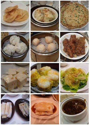 美食第五站,稻香早茶(油炸云吞,腐皮卷??,家乡??(其实就是煎饼),叉烧包,虾饺,凤爪金钱肚,椰汁马拉糕,鲜虾烧卖皇,生菜,肠粉,碗翅)
