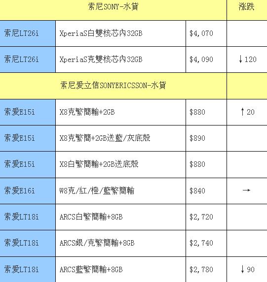 索尼、索尼爱立信本周行情—LT26i水货再跌,索爱依旧降