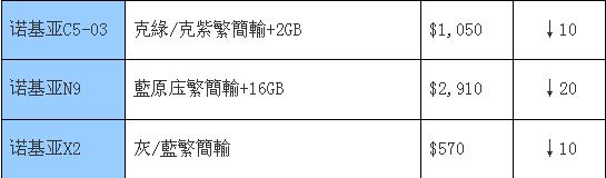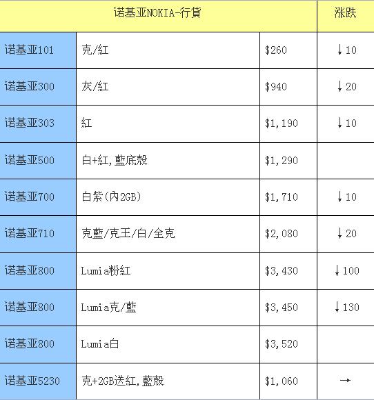 诺基亚手机本周行情——整体微降,Lumia800再下一百