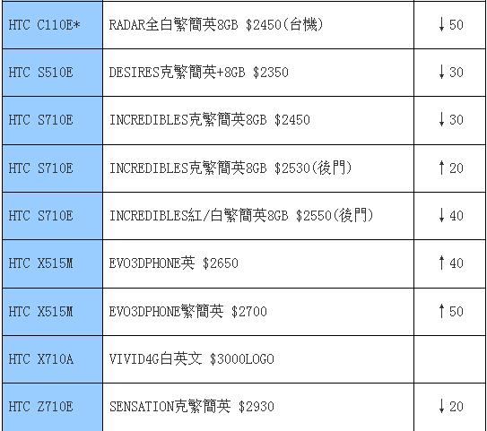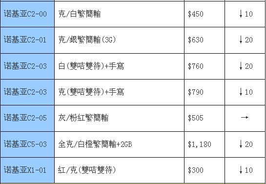 以下报价,如表内无特殊说明,则为原装配件的行货/后行/水货/上台机报价,一般来说原装配件为一电一充,“克”意思为黑色,“繁简英”是指手机所支持的语言,“繁简输”是指手机支持的输入法,“笔画”是指手机的键盘有笔画刻字。