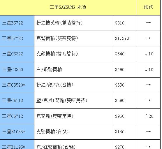 三星手机本周行情—跌不停