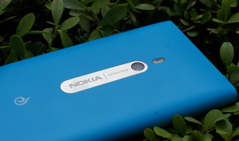 机身背面,Lumia 800在中部靠上位置内置有一个800万像素相机模块,并采用卡尔蔡司认证镜头,另外设置双LED闪光灯。作为背部最突出的部分——LOGO铭牌,极易被磨损,所以用户在将手机平放至桌面的时候要小心。