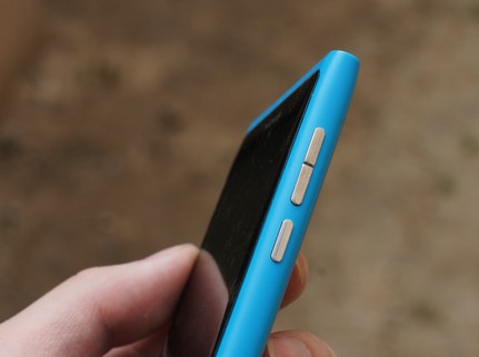 在侧面设计上,诺基亚Lumia 800C在机身右侧设计有音量调节键、锁屏/电源键、以及相机拍照按键,而左侧没有任何按键布局。扬声器位于机身下部,从笔者试用的情况来说,音量比较适中,效果尚可。