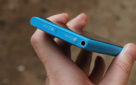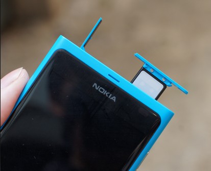 机身顶部为microUSB接口和SIM卡槽。Lumia 800也改用了micro SIM的设计,需要剪卡才能适配。