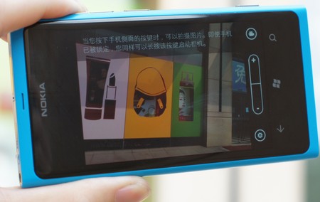 Windows Phone 7.5 Mango手机的拍照界面很简单,长按机身侧面的拍照快门,即使在屏幕锁定状态下,也能够快速启动拍照功能。