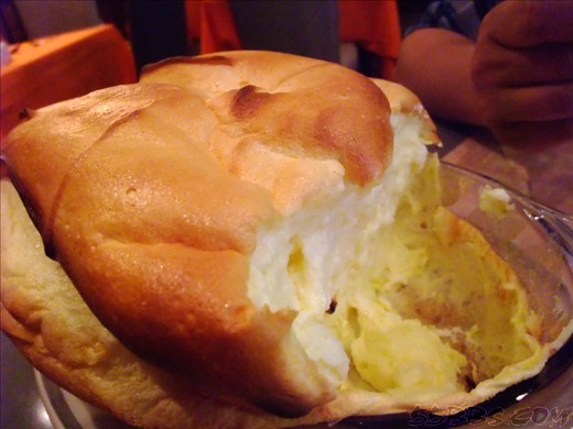 外皮是稍微硬一点的口感,中间有浓郁的蛋香软质膏体,有点类似于炖蛋,再往里是泡沫状的,好像吃到鲜甜的泡泡。味道不会很甜,吃起来停不了嘴。