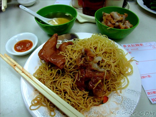 这家店的招牌应该是云吞面,但是我看到了招牌南乳猪手捞面,猪手啊,我超爱的。点之,大叔伙计用香港话跟我对话说我点的好,说这系招牌的啦~很好味的~~哈。
