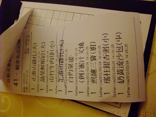 看看我们点了多少吃的~~一张单子都放不下了。呵呵。